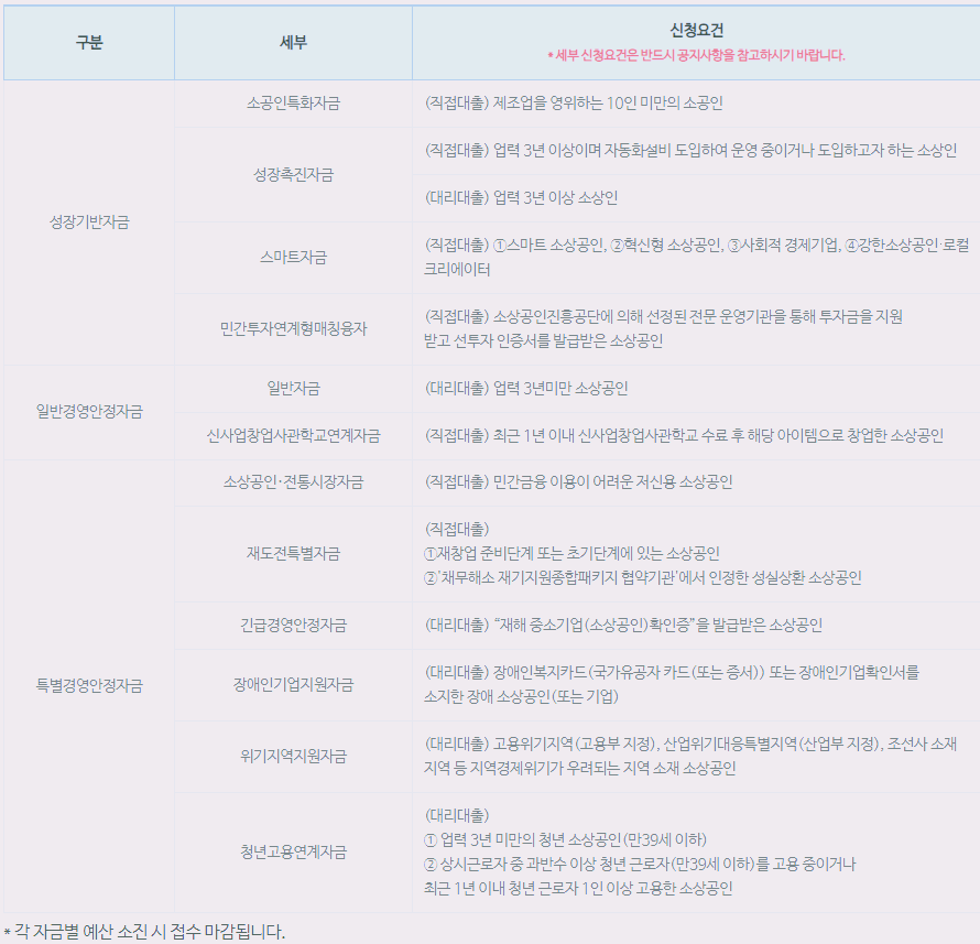 소상공인 정책자금 세부 지원요건은 아래 이미지와 링크를 참고해 주시기 바랍니다.