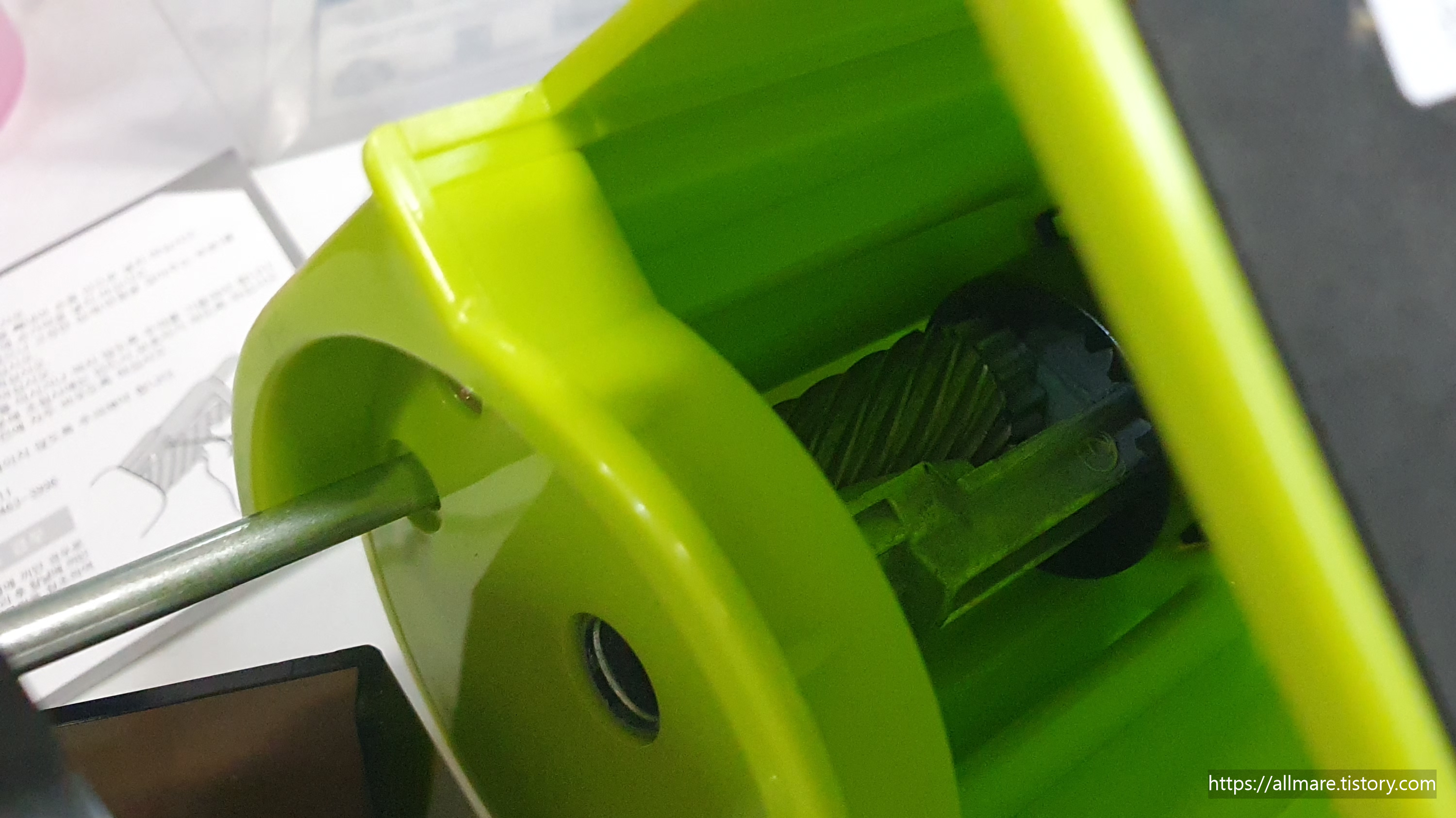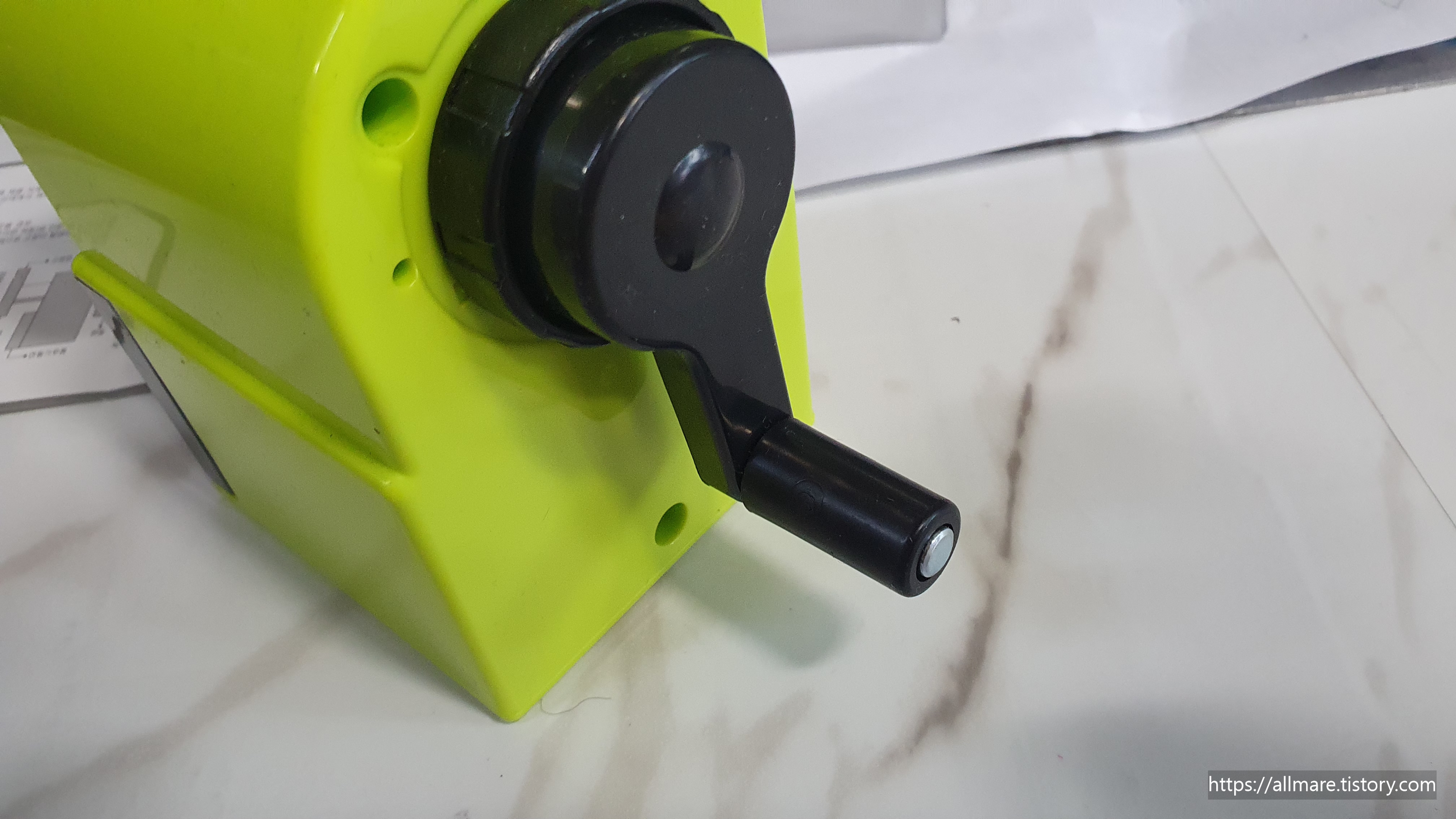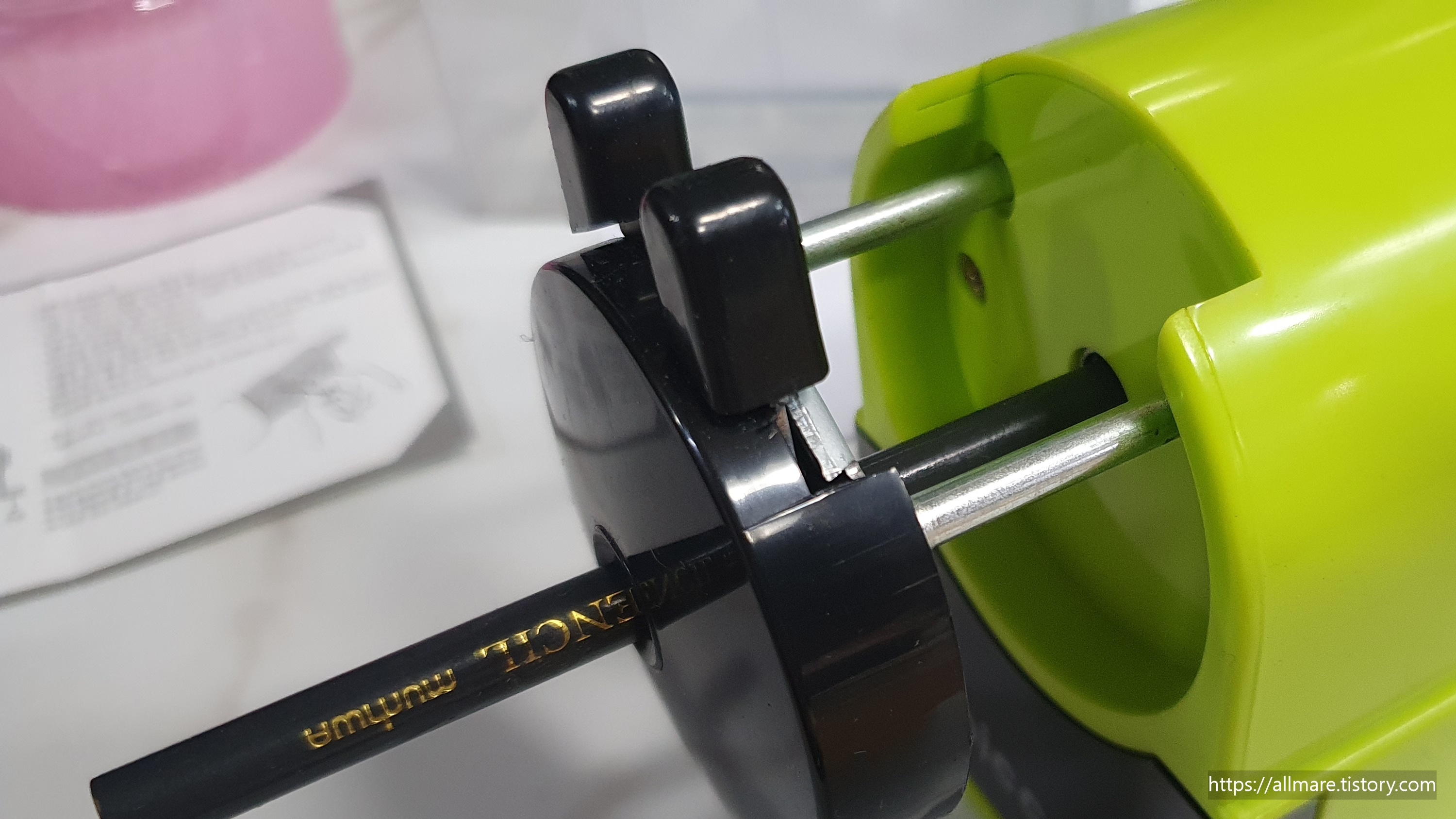 이런식으로 연필깍이에 연필을 고정하고 롤러를 돌려주면 됩니다.